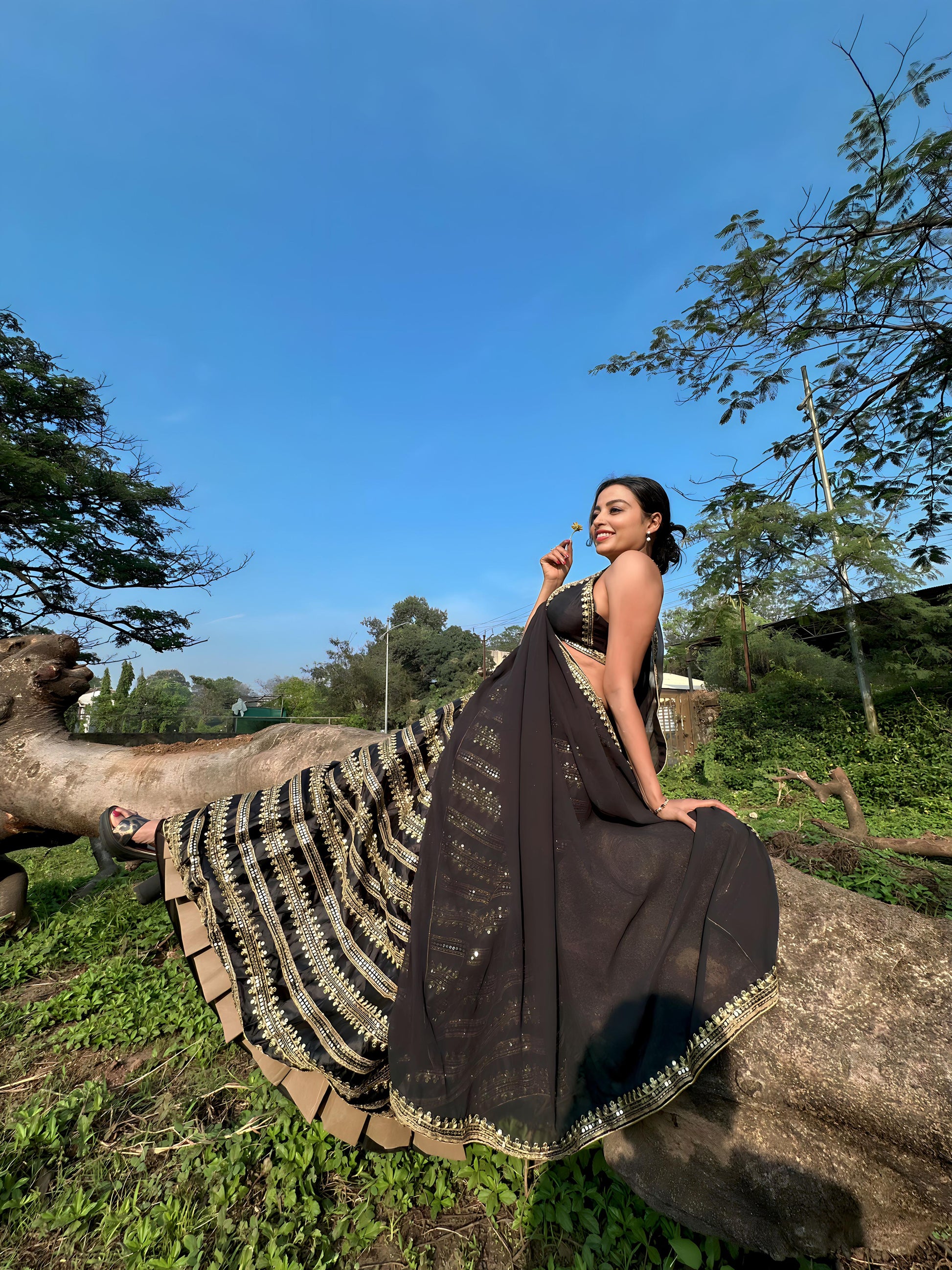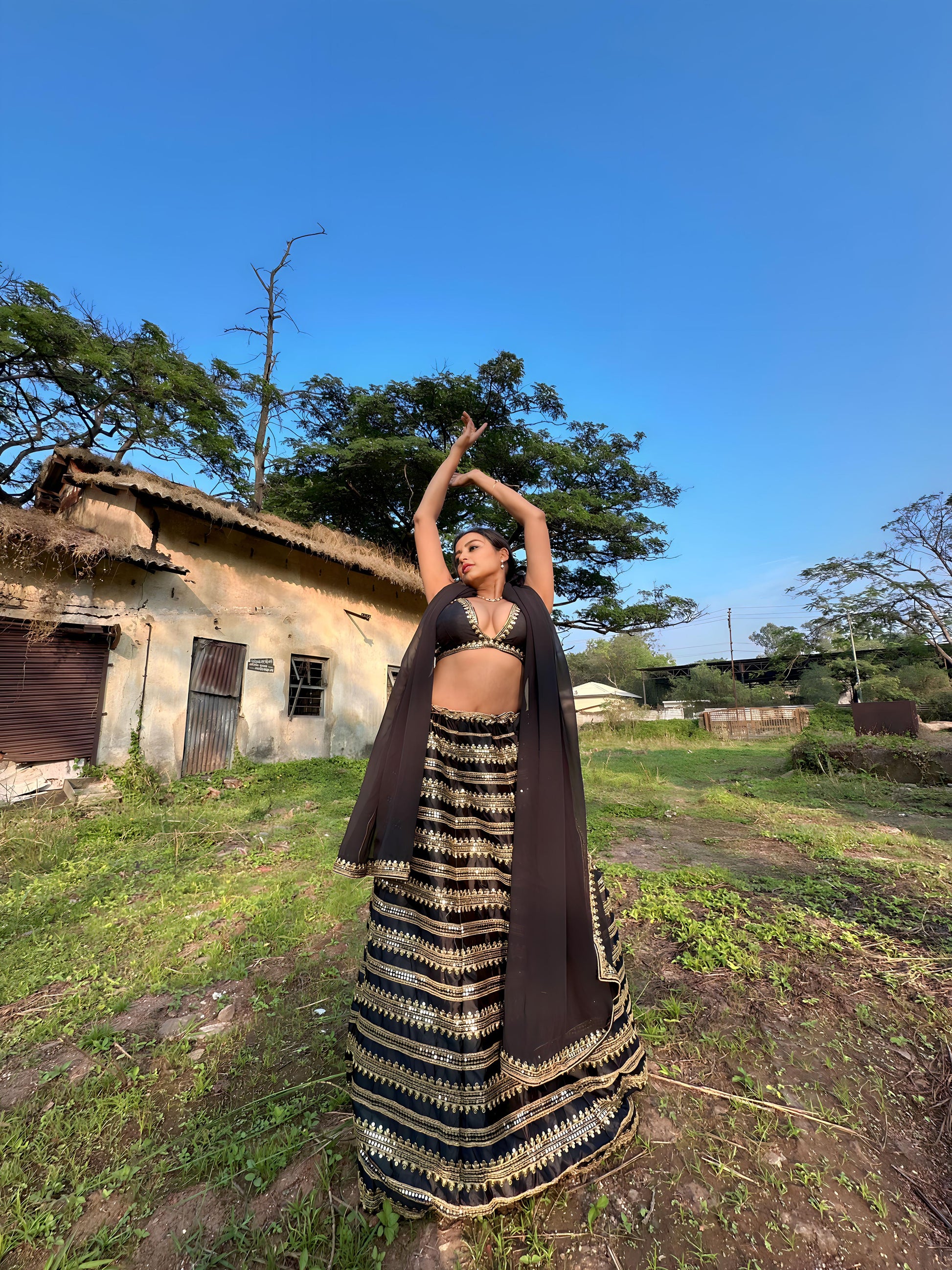 - Lehenga Color: Black & Gold