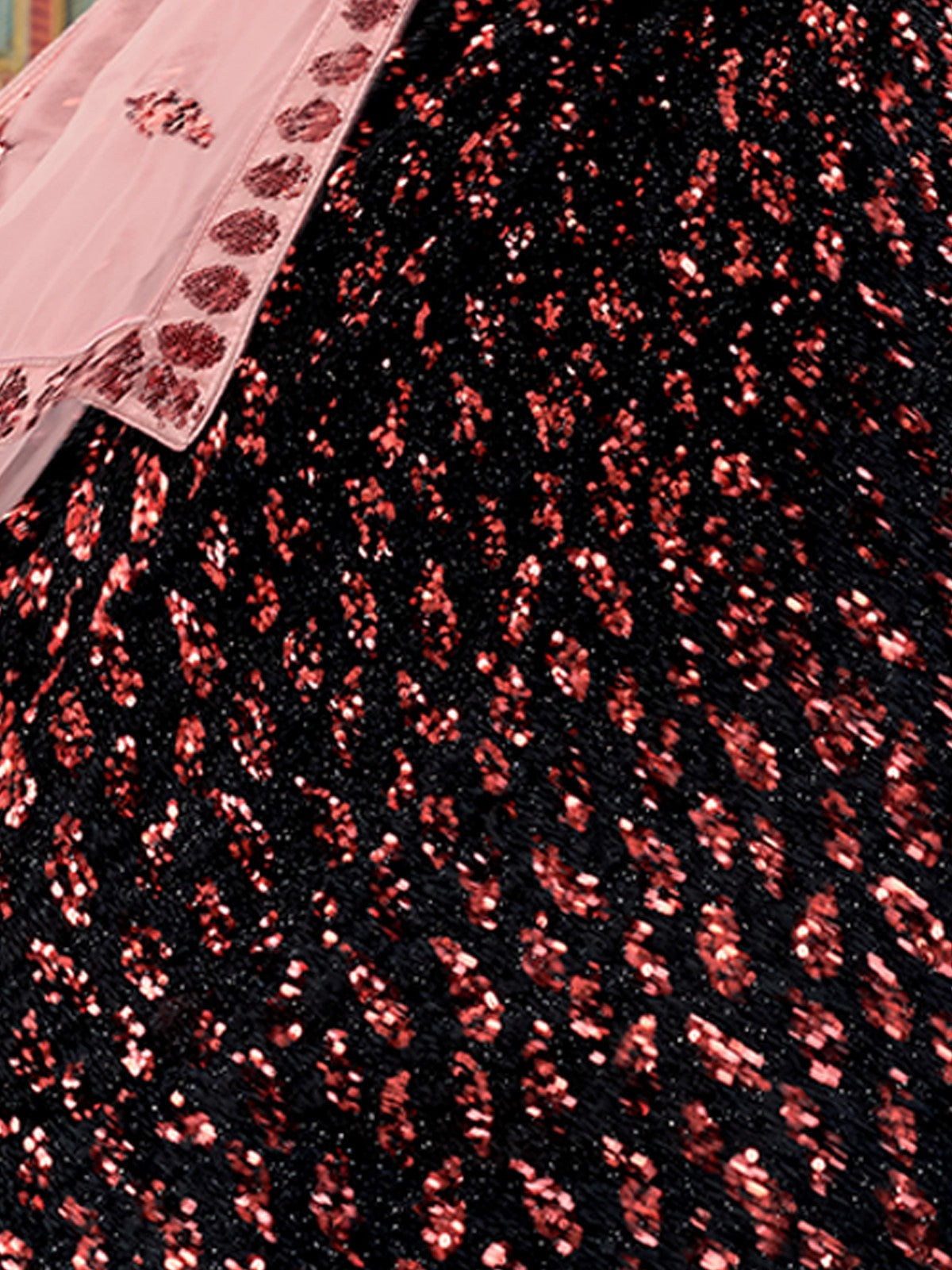 Add light to the celebration called life beaming in this lehenga, choli and dupatta set. Crafted on Fur Imported Fabric, the set is beautified with Sequins.