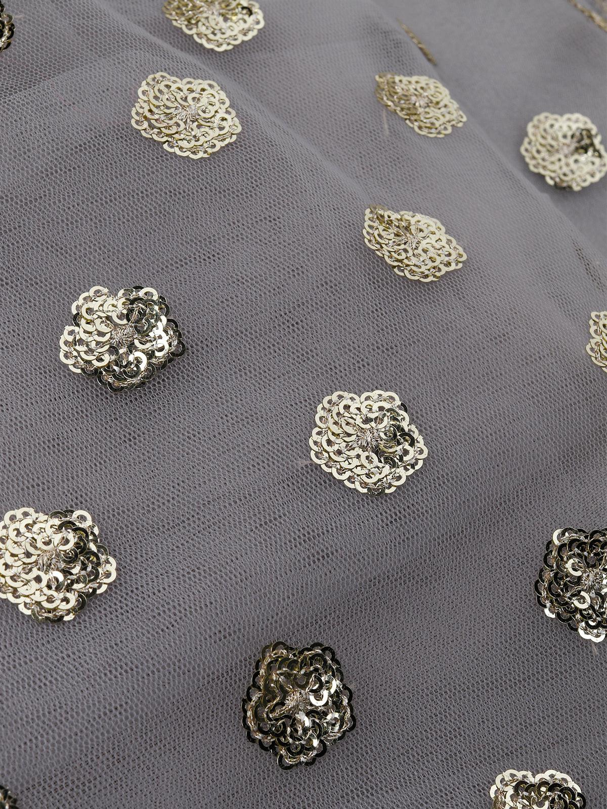A modern-day fairytale look, this Soft Net Lehenga features Grey Sequins Embroidery Work. paired with a matching unstitched blouse, it comes with an embroidered dupatta.