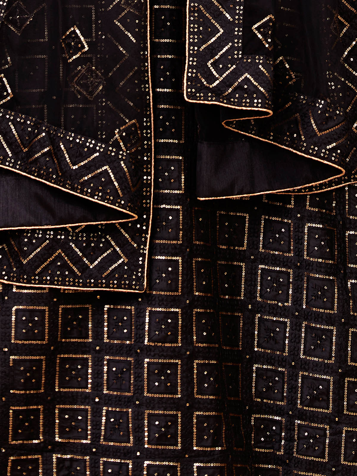 Odette Women Fashionable Black Embroidered Semi Stitched Lehenga With Unstitched Blouse