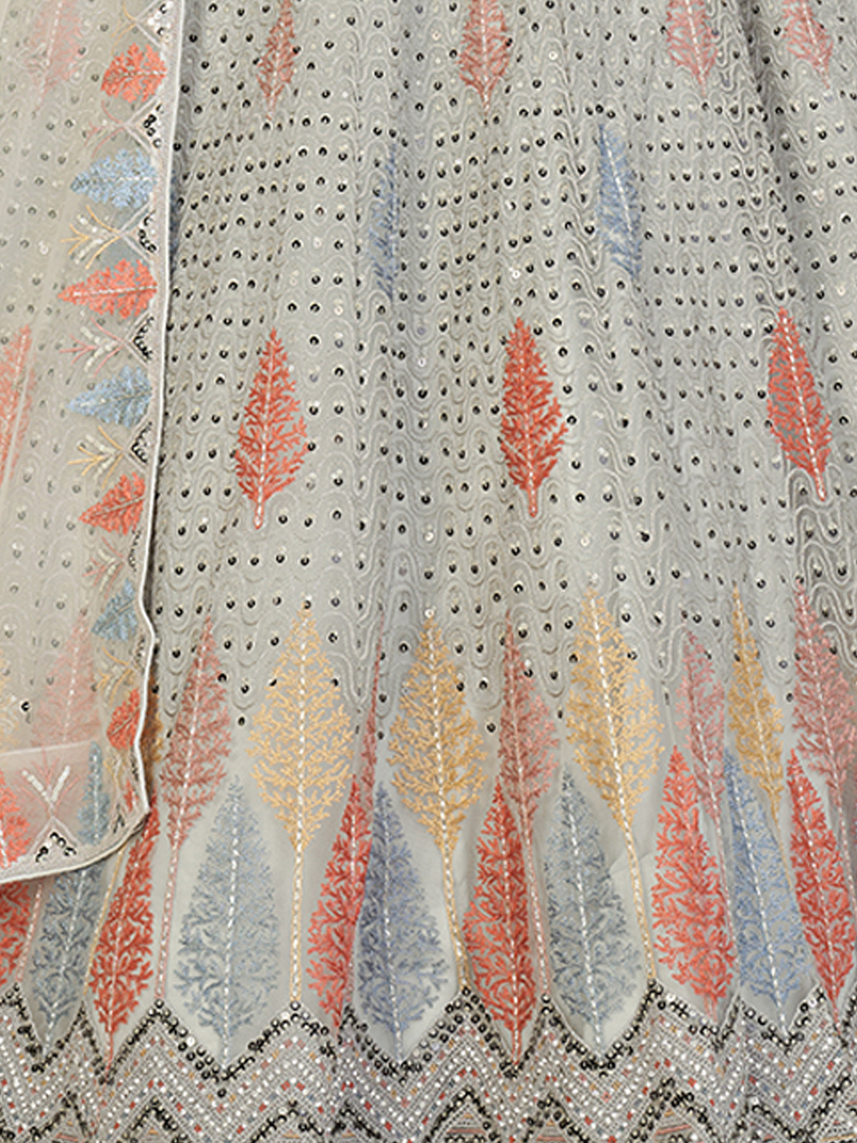 Odette Women Grey Net Embroidered Semi Stitched Lehenga With Unstitched Blouse