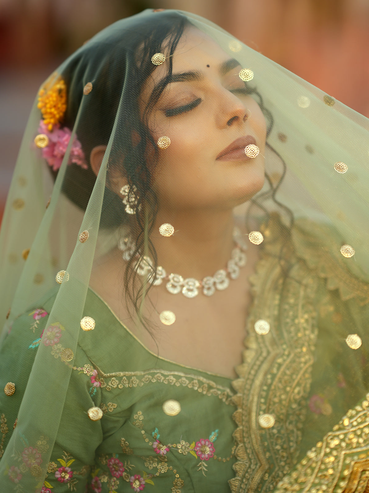 Grab This Party-wear Heavy Designer Lehenga Choli And Dupatta Set In Lovely Light Green Color Fabricated On Chinon Silk and Beautified With Heavy Attractive Embroidery Work.