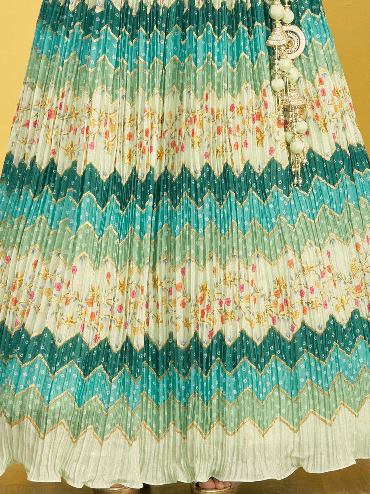 Odette Light Green Chinon Embellished Semi Stitched Lehenga With Unstitched Blouse For Women
