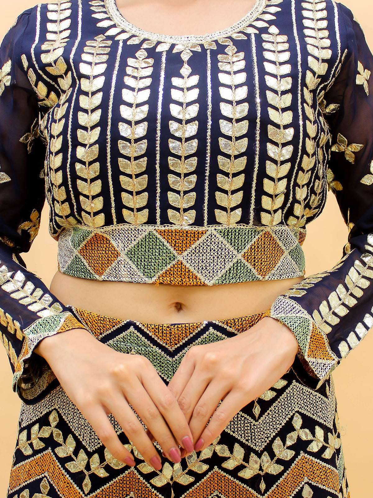 Odette Navy Blue Embroidered Georgette Stitched Lehenga With Blouse For Women