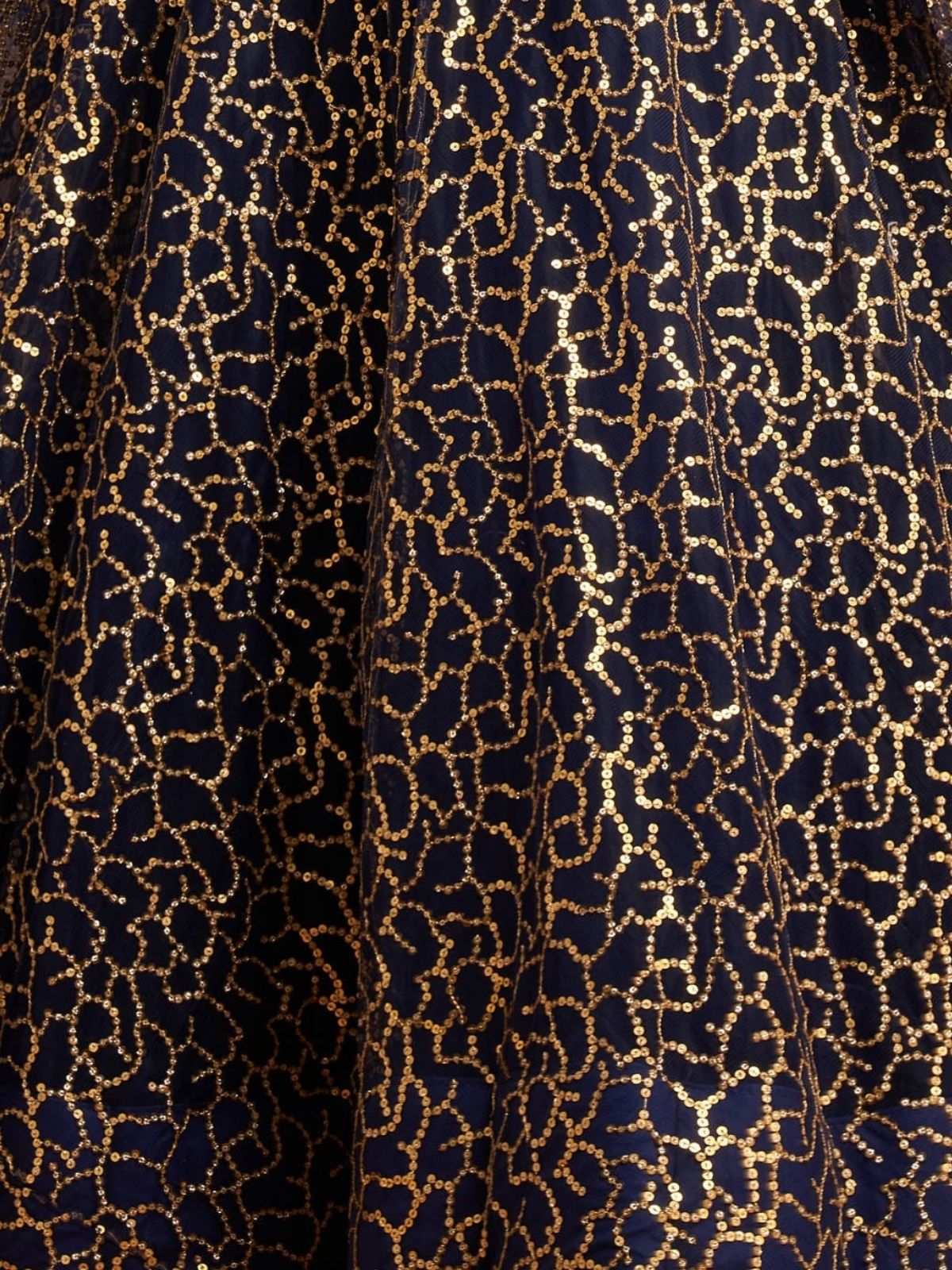 Odette Navy Blue Soft Net Embroidered Semi Stitched Lehenga With Blouse For Women