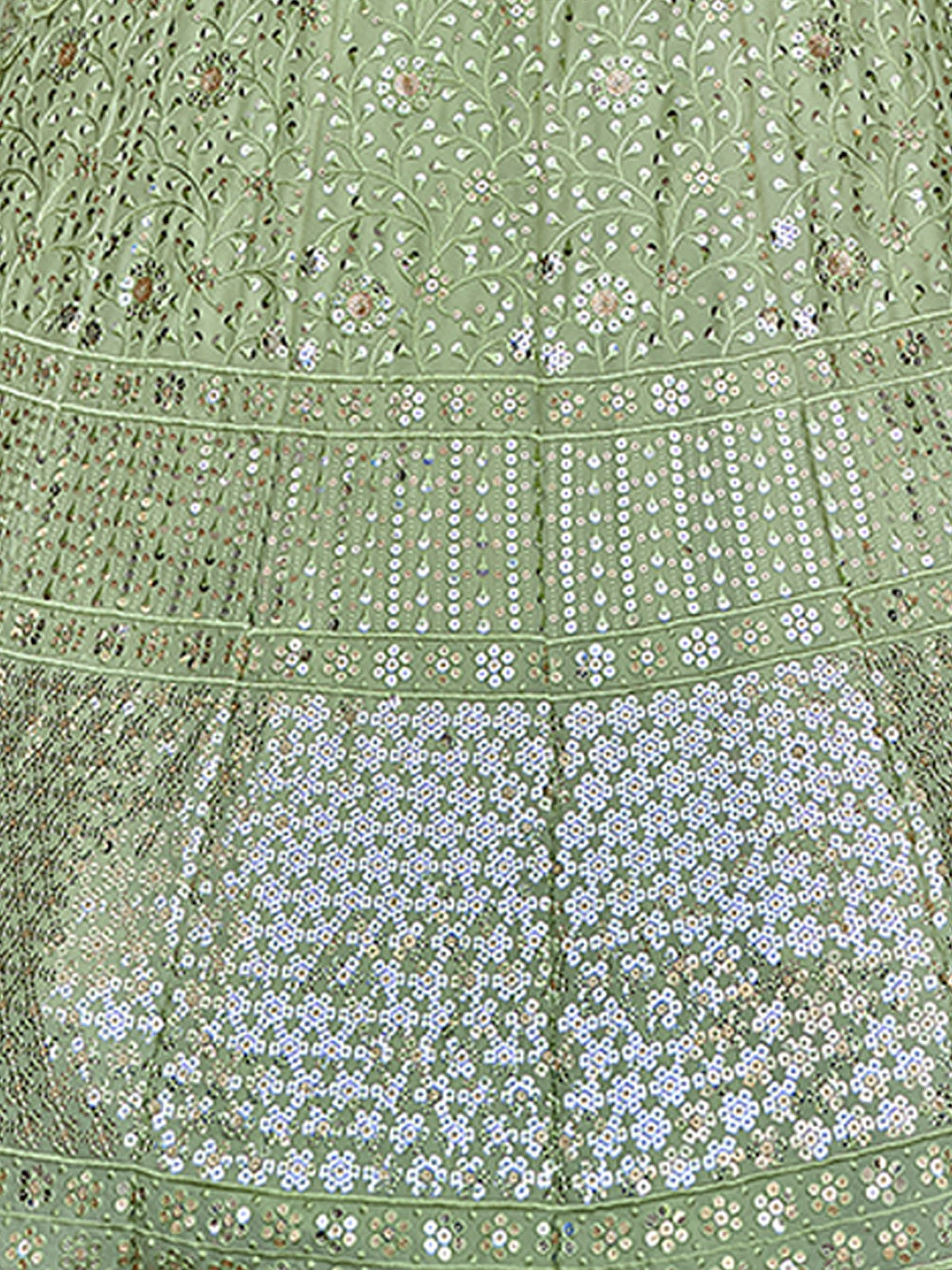 Odette Olive Embellished Georgette Semi Stitched Lehenga With Blouse For Women
