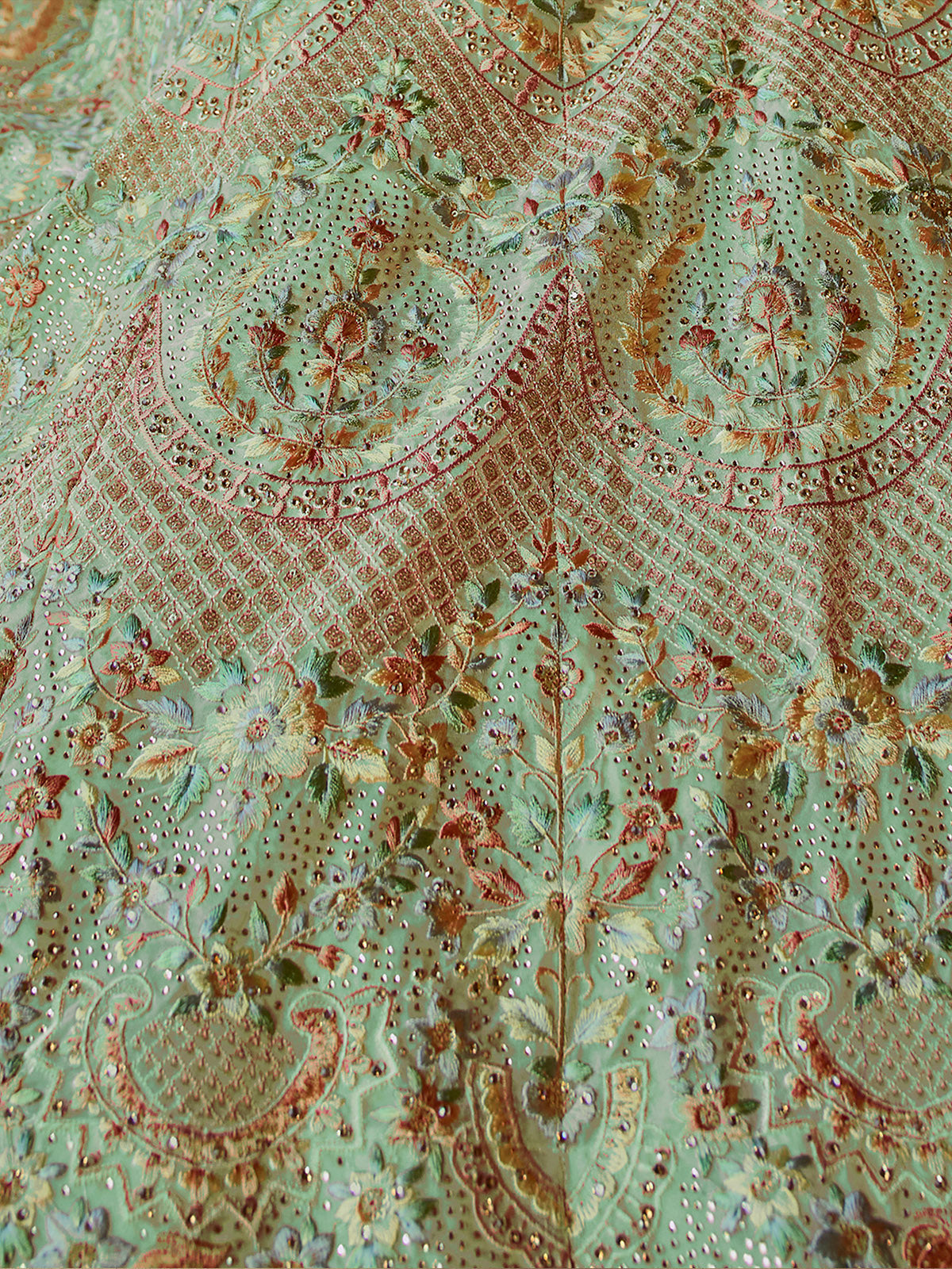 Odette Olive Embroidered Georgette Semi Stitched Lehenga With Blouse For Women