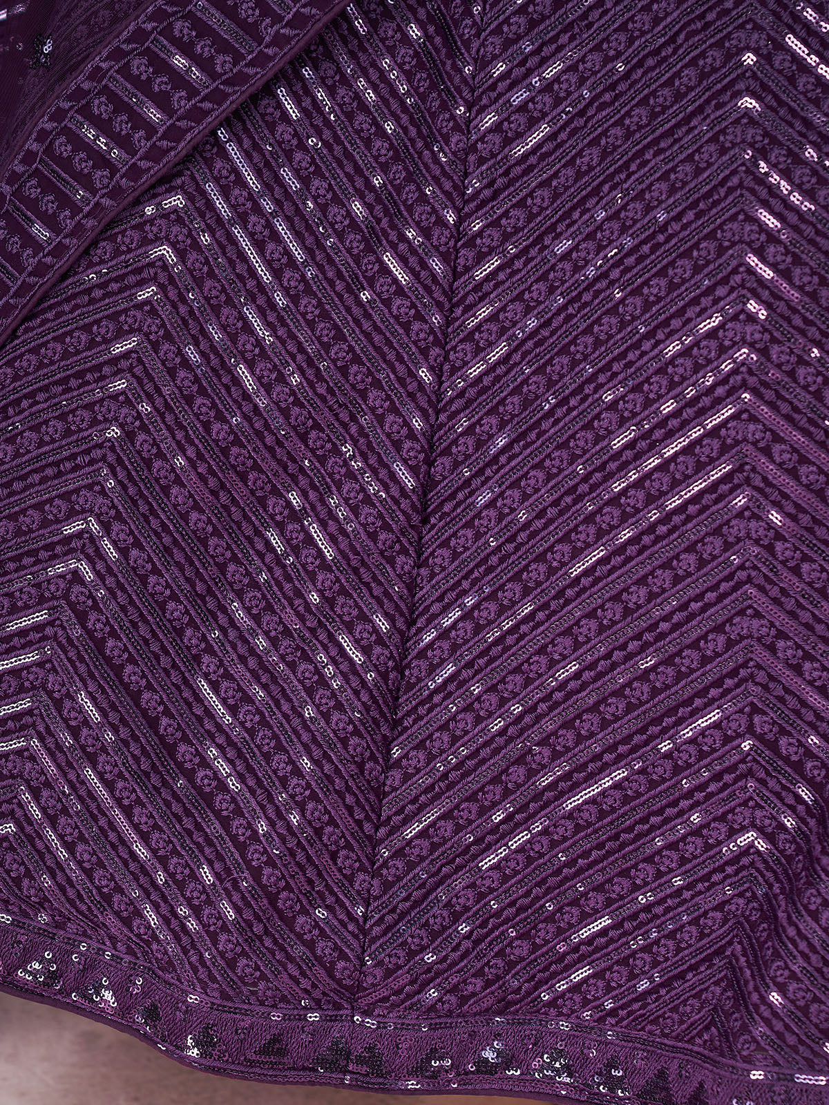 Odette Purple Georgette Embellished Semi Stitched Lehenga With Unstitched Blouse For Women