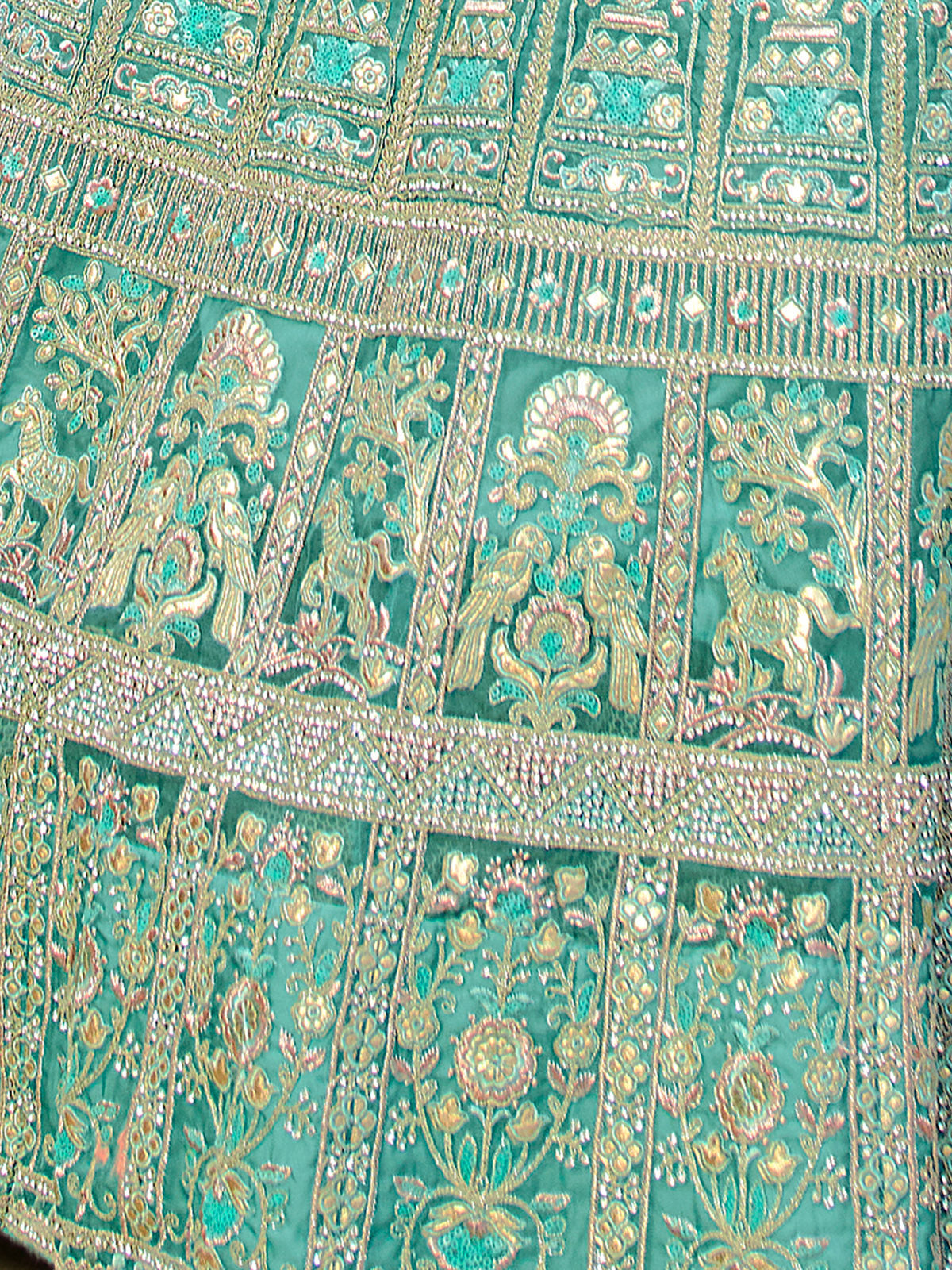 Odette Sea Green Embroidered Organza Semi Stitched Lehenga With Blouse For Women