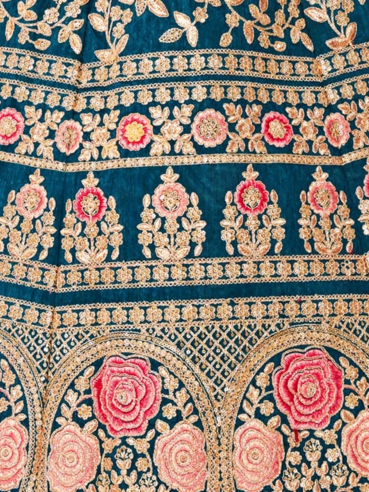 Odette Teal Silk Blend Embroidered Semi Stitched Lehenga With Unstitched Blouse For Women