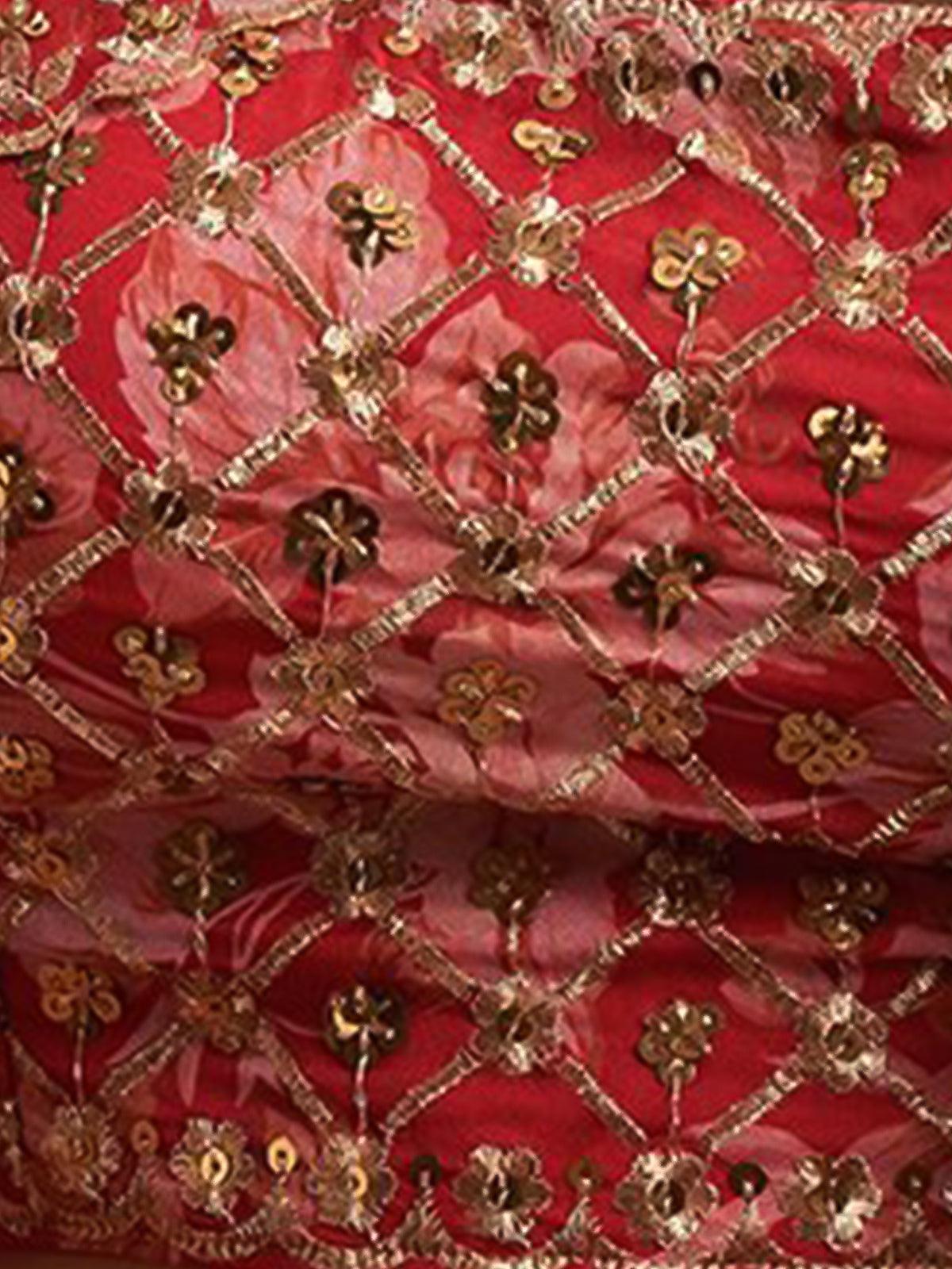 - The Blouse is Un-Stitched and can be stitched up to 42 inch bust with Half Sleeves. It Comes along with Poly Georgette Dupatta having Sequins Motifs All Over And Embroidered Cut Work Lace.