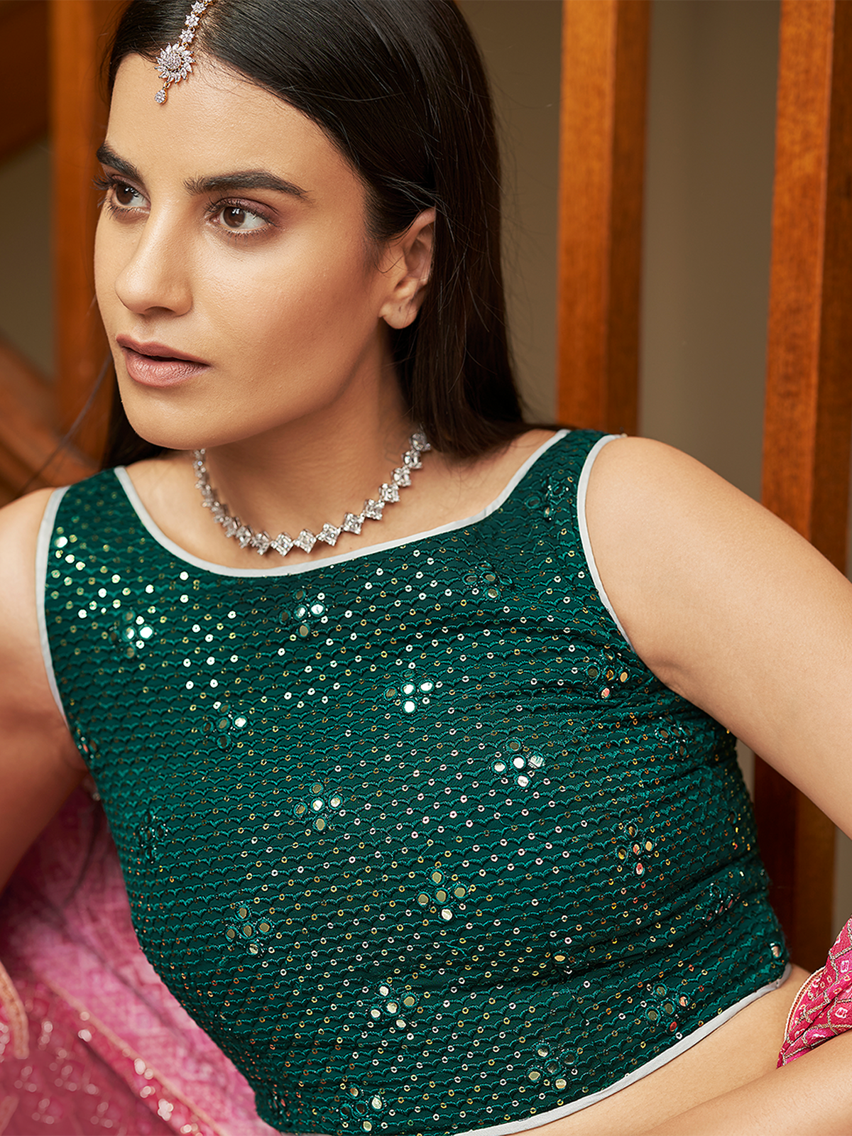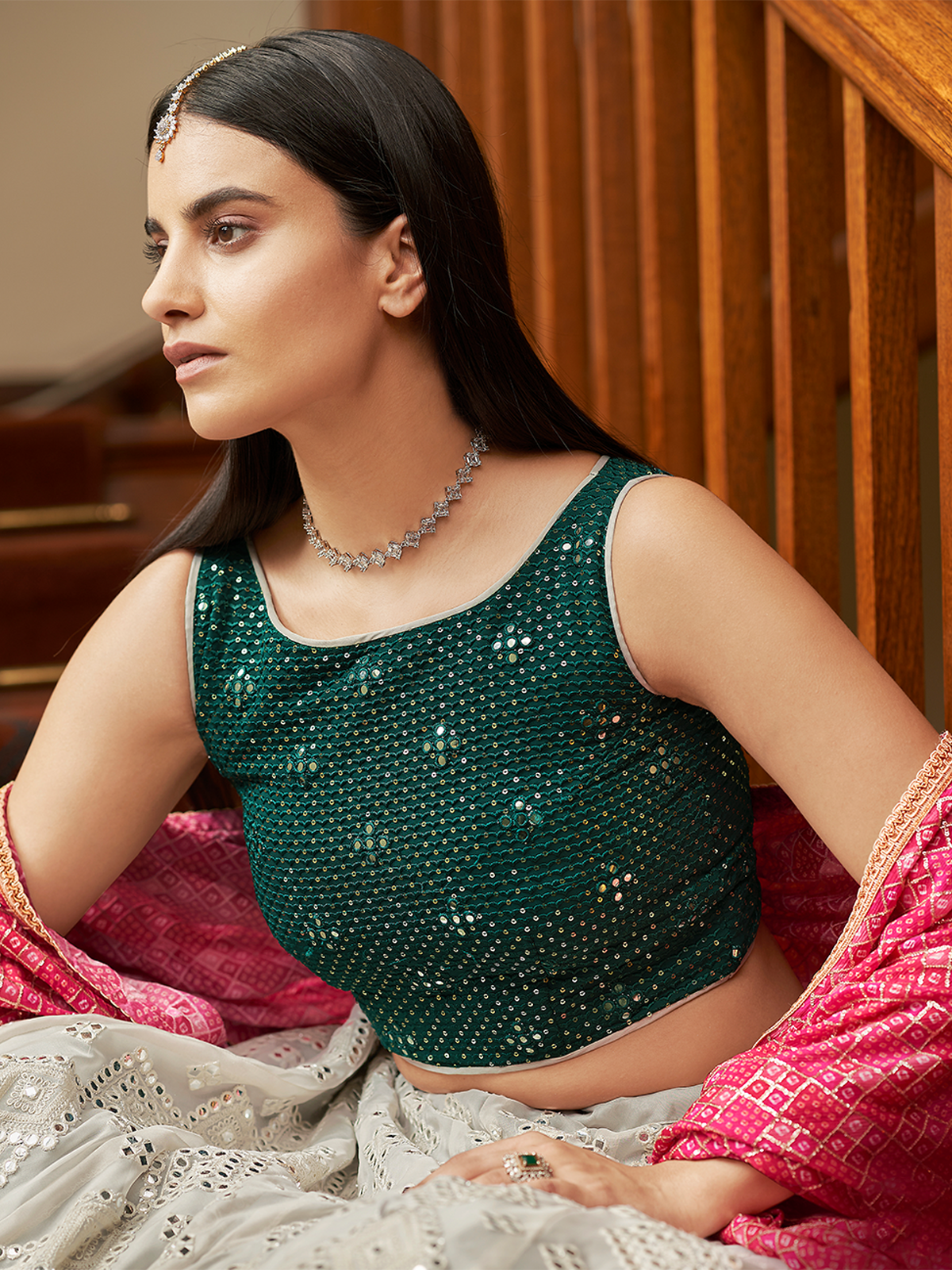 - Lehenga work : Sequins, Mirror, Gota, Resham, Print